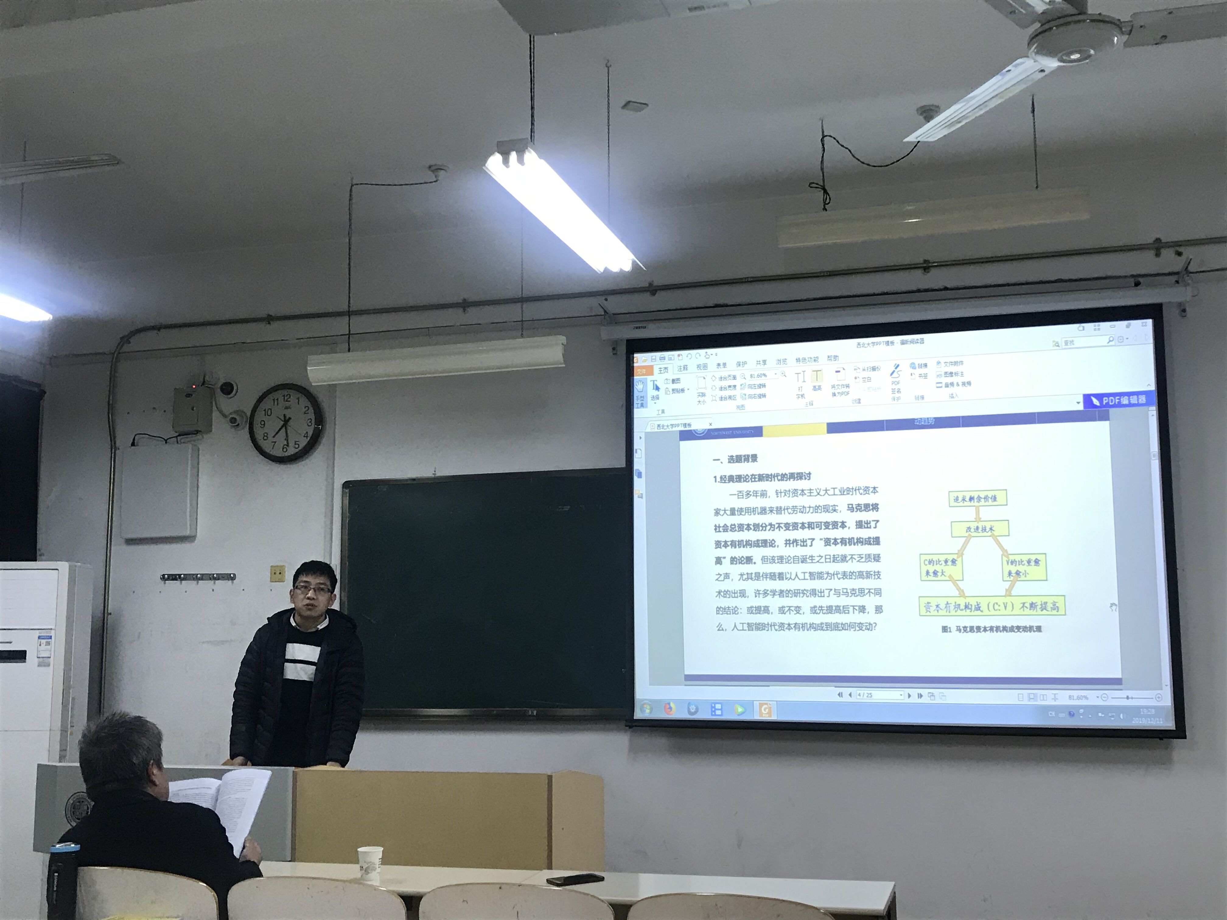 “基地学术课堂”的第一单元为现代经济学理论与方法创新论坛第十六卷第十期,由yl23455永利官网2017级经济学基地班本科生于家伟对题为《人工智能时代资本有机构成的变动趋势及其启示——基于三次冲击分析框架的考察》的论文进行了报告。马克思的资本有机构成理论正确解释了资本主义下相对人口过剩的现象,随着新一轮技术革命浪潮到来,人类将进入人工智能时代,在新的背景下对资本有机构成的变动趋势进行考察具有重要的理论和现实意义。本文根据人工智能发展的阶段性特征,构建了发达国家和发展中国家资本有机构成变动的三次冲击分析框架,并将之与康德拉季耶夫周期结合进行考察。本文得出了发展中国家资本有机构成变动滞后于发达国家一个阶段的规律,揭示了发达国家和发展中国家在技术革命浪潮中的不等地位,并得出了包括我国在内的广大发展中国家应对人工智能革命冲击的一些启示。杨建飞教授对该论文研究主题的新颖性与独特性予以肯定,并就论文的选题及写作方法给予同学们指导。