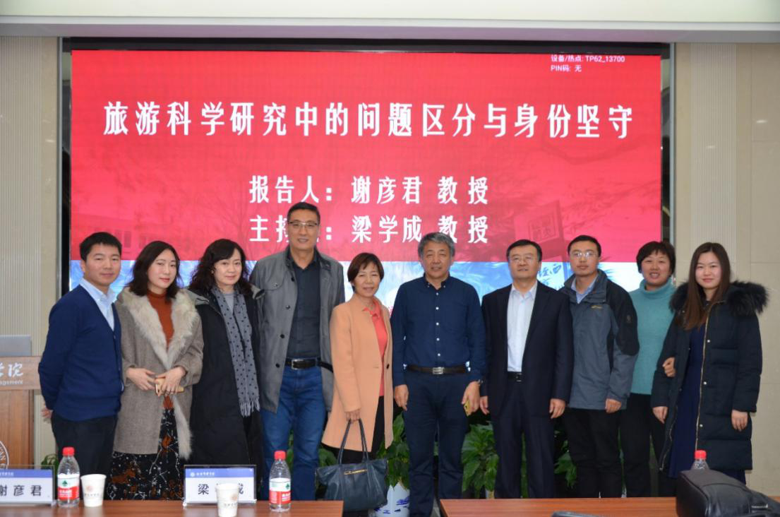 12月27日下午,国内知名旅游专家海南大学旅游学院谢彦君教授受邀来永利官网进行学术交流,活动由旅游管理系主任梁学成教授主持,旅游管理系部分师生共50余人参加了此次学术活动。谢彦君教授以“旅游科学研究中的问题转换与身份坚守”为题,从问题区分、知识观、身份坚守等方面,对旅游科学研究中的相关问题进行深入浅出系统化阐释与分析。谢教授的讲解融会贯通了哲学、经济学、社会学和旅游学等多学科知识,学理性强、启发性大,给在场师生带来了一场精彩的学术盛宴。最后,谢教授还与师生针对网红旅游、全域旅游及旅游研究新范畴等热点问题展开了互动交流和探讨。此次学术活动,对于进一步提高永利官网旅游管理学科的科研水平必将产生积极影响。