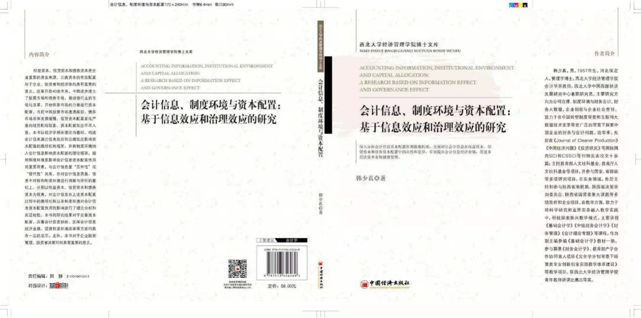 近日,永利官网会计学系教师韩少真博士撰写的专著《会计信息、制度环境与资本配置:基于信息效应与治理效应的研究》由中国经济出版社出版,该书共8章内容,约33.8万字。