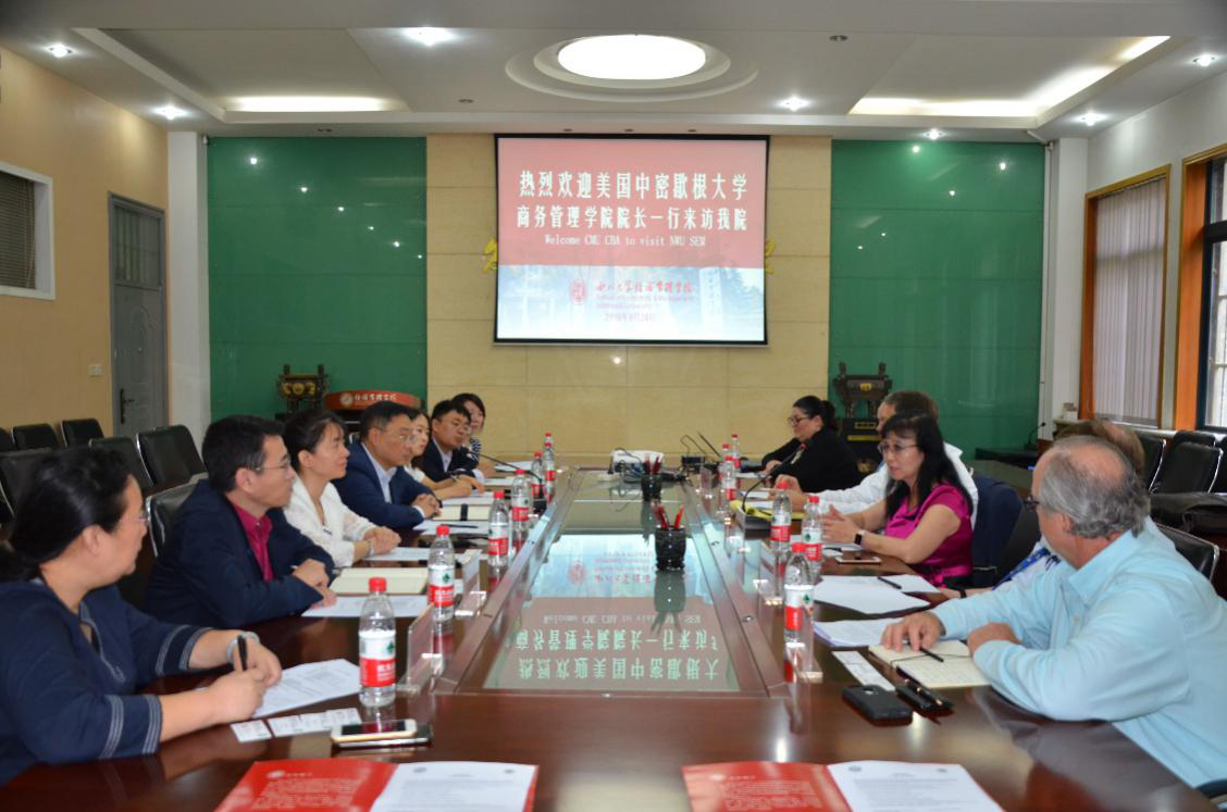 9月24日上午,美国中密歇根大学商务管理学院院长Mobery教授一行来访永利官网,永利官网党委书记杜勇,副院长马莉莉、李辉、赵传仁,副教授付媛、康蓉参加座谈。