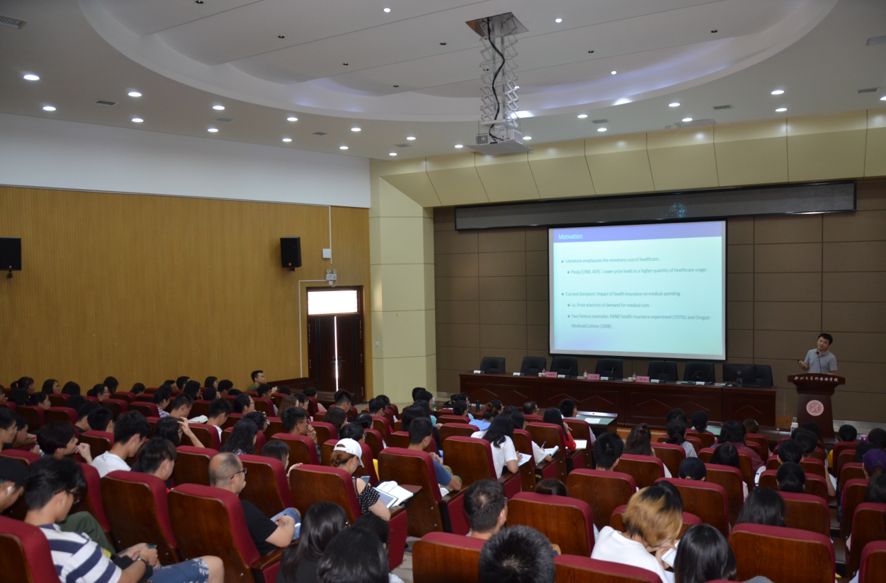 黄炜教授通过询问在场同学“在临近的考试周是否会因为头疼脑热而前往医院就诊放弃复习” 的问题引起大家对时间成本与医疗保健使用率这二者间关系的思考。接着,黄炜博士利用退休制度这一外生事件带来的冲击,通过对中国和美国的三组数据运用断点回归设计(RDD)进行分析,来验证退休前后患者的一系列变化,从而达到研究时间成本的变化对医疗保健使用率影响的目的。实证研究结果发现劳动供给在退休前后发生了明显的变化,患者的门诊就诊率没有发生明显的变化,但住院率发生了明显的变化。这初步验证了猜想:即随着患者进入退休状态,他的时间成本相对于工作时有所下降,从而使得住院率在退休年龄附近有一个明显的跳跃。在基本结论的基础上,分别从教育背景、医院类型、住院天数、家庭支出等方面,进行了进一步的异质性分析。结果表明,前结论在高教育水平人群中更加明显。并且,体制内人群到达退休年龄后会增强体育锻炼并增加医疗保健支出。这些结论不仅极大地丰富了健康经济学的文献库,更重要的是为国家在经济转型时期的退休制度、医保制度等方面提供了全新的思考和挑战。
