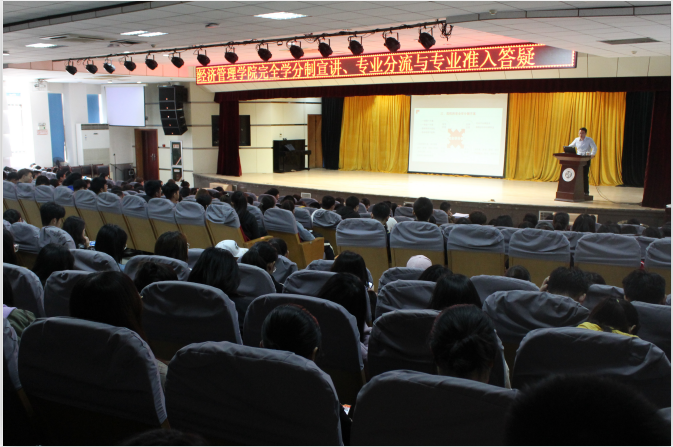 近日,永利官网针对2018级新生召开yl23455永利官网完全学分制宣讲、专业分流与专业准入答疑会。永利官网主管学生工作的赵金哲副书记、主管本科教学工作的李辉副院长、2018级辅导员、2018级400余名新生参加了宣讲会。宣讲会由赵金哲副书记主持。