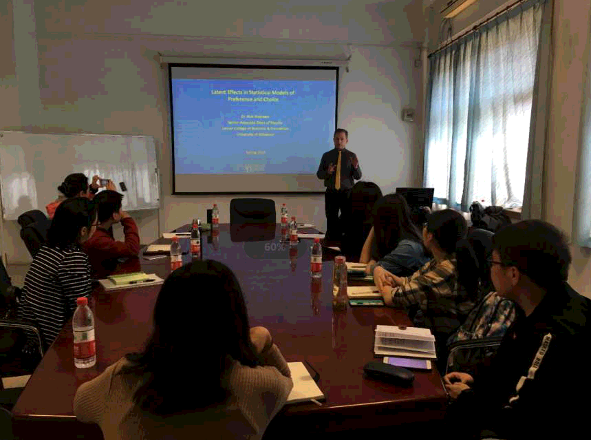 Rick Andrews教授的研究领域是市场营销、计量经济学和统计学,主要研究消费者偏好和选择建模、零售监测数据建模和分析、时间序列分析和预测、市场研究量化分析等具体问题。此次,他主讲的题目是:Latent Effects in Statistical Models of Preference and Choice。首先,他介绍了之前利用各种计量和统计模型在营销学顶级期刊上发表过的多篇学术论文,然后重点讲解了营销研究中的建模方法和思路,以及各种模型的优缺点和应用情境。最后,他还介绍了自己和研究团队正在进行的若干前沿研究选题,比如新浪微博等社交媒体的数据挖掘和建模等。讲座结束后,李纯青教授和在场的师生与Rick Andrews教授就超市扫描数据的获取、建模方法等相关具体问题做了进一步交流和探讨。此次沙龙不仅拓展了永利官网师生的学术研究视野,也在市场营销研究方法的多样化方面有了新的认识和启发。