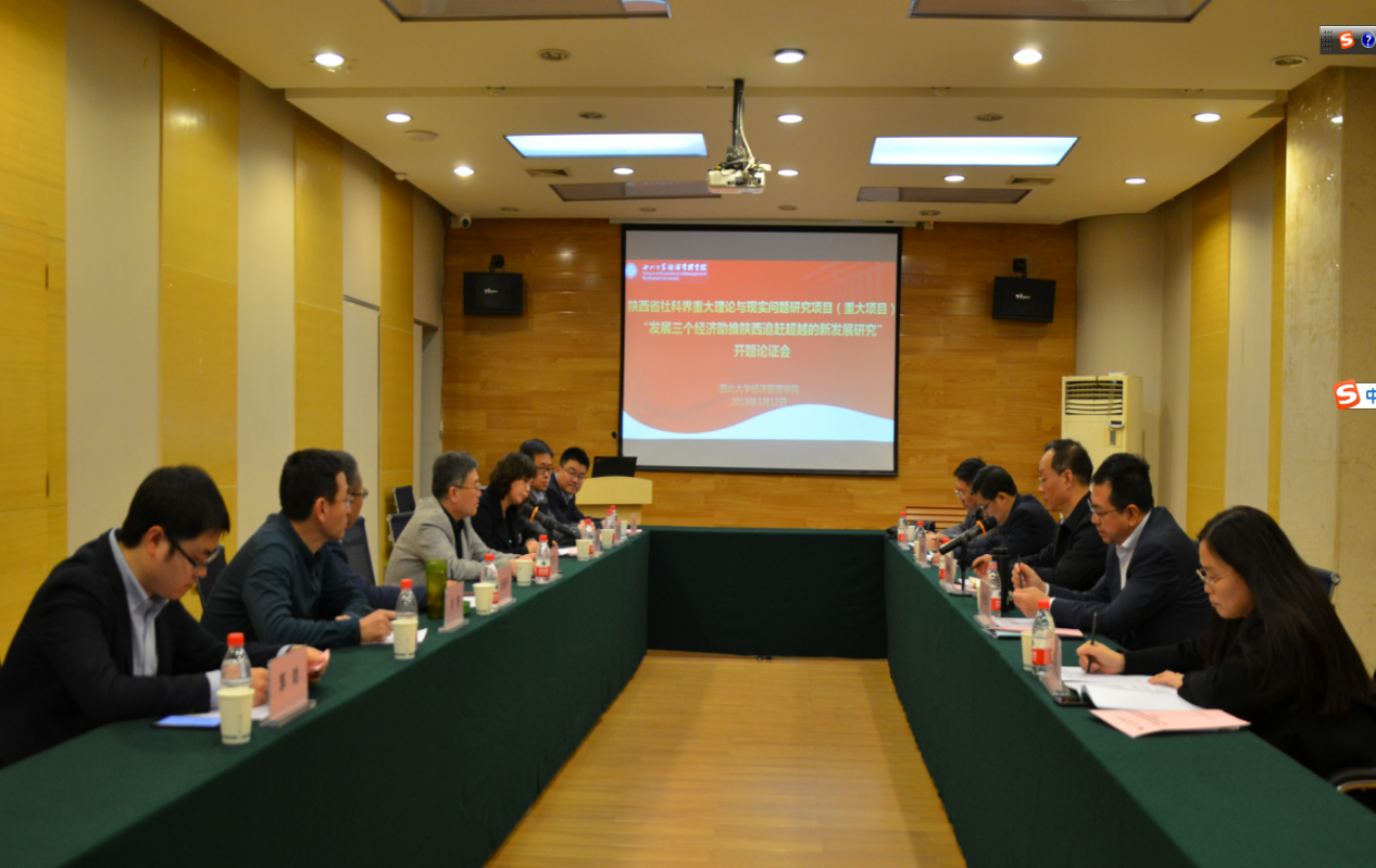 2019年3月12日下午,由yl23455永利官网校长郭立宏教授承担的陕西省社科界重大理论与现实问题研究项目《发展“三个经济”助推陕西追赶超越的新发展研究》开题论证会在我校太白校区召开。省社科联党组书记、常务副主席郭建树、省商务厅副厅长李生荣、省发改委规划处处长李雄斌、省社科院经济研究所所长裴成荣研究员、西安交通大学经济与金融学院冯宗宪教授、省社科院科普部部长李瑛应邀出席。课题组成员yl23455永利官网研究生院院长任保平教授、yl23455永利官网教务处副处长郭晗副教授、yl23455永利官网副院长李辉副教授,以及yl23455永利官网社科处副处长李丰庆出席了会议。会议由yl23455永利官网院长吴振磊教授主持。