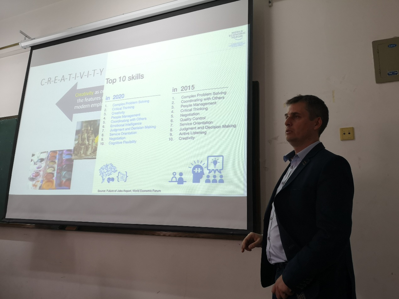 代表团此行还访问了yl23455永利官网,并为师生作学术报告。在3月21日举行的《未来职业所需的能力及人力资源管理面临的变革与挑战》报告中,Dariusz Danilewicz副教授从数据的飞速发展入手,探讨了新的经济环境对于职业产生的新要求,他通过对比世界经济论坛发布的2015年和2020年最重要的技能,分析了为何复杂问题的解决能力、批判性思维能力、创新能力是位居前三的重要技能;结合工业革命发生的历史,探讨了职场能力正在发生的巨变,指出如今的工作中将有47%会在未来十年之间不复存在,分析了人力资源管理领域可能产生的变革和必须应对的挑战。最后他用彼得德鲁克的一句名言结束讲座,即“预测未来的最佳方法就是开创未来”。