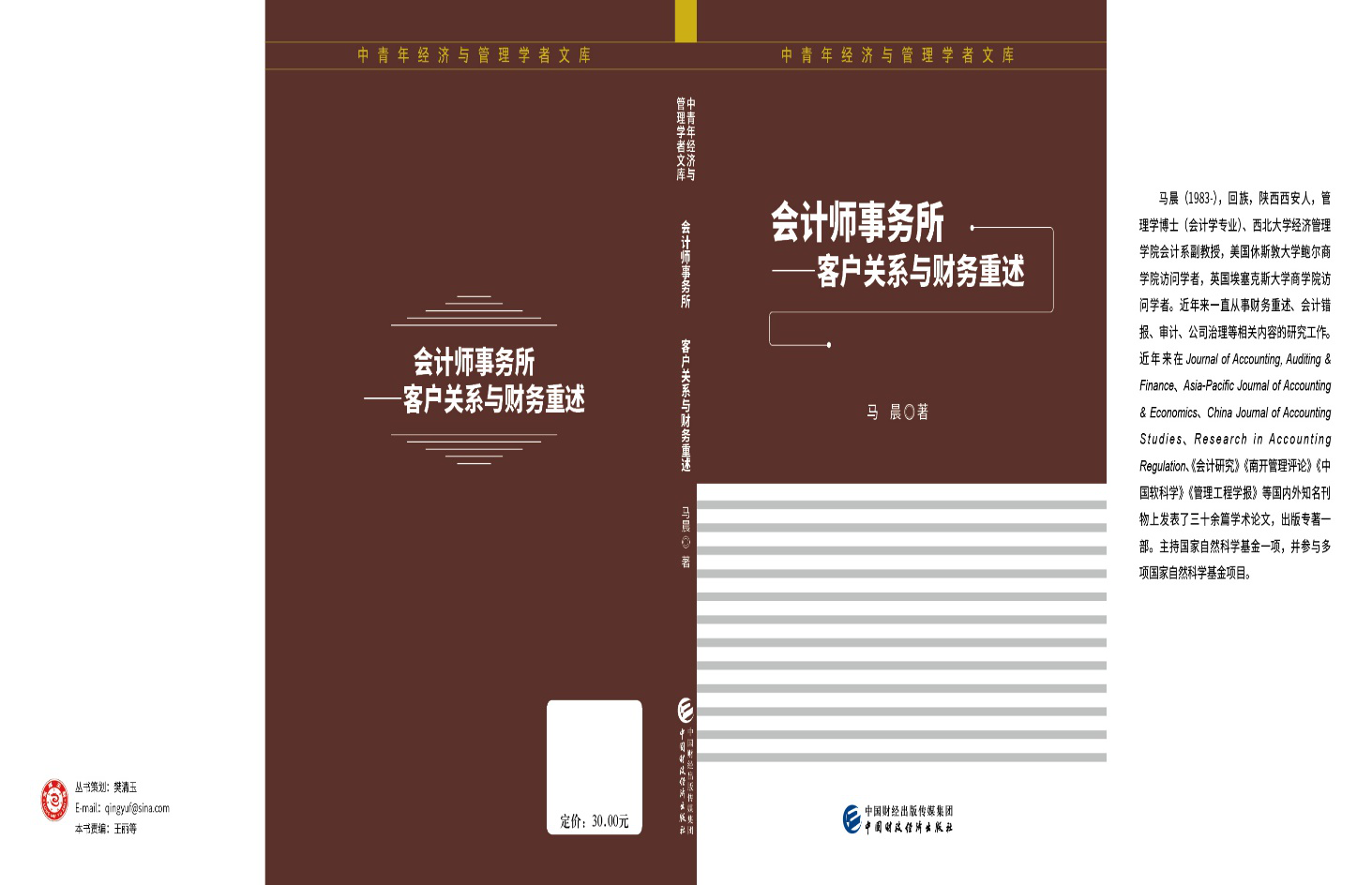 近日,由永利官网会计系教师马晨副教授独立撰写的专著《会计师事务所-客户关系与财务重述》出版,该书共7章内容,约12万字。