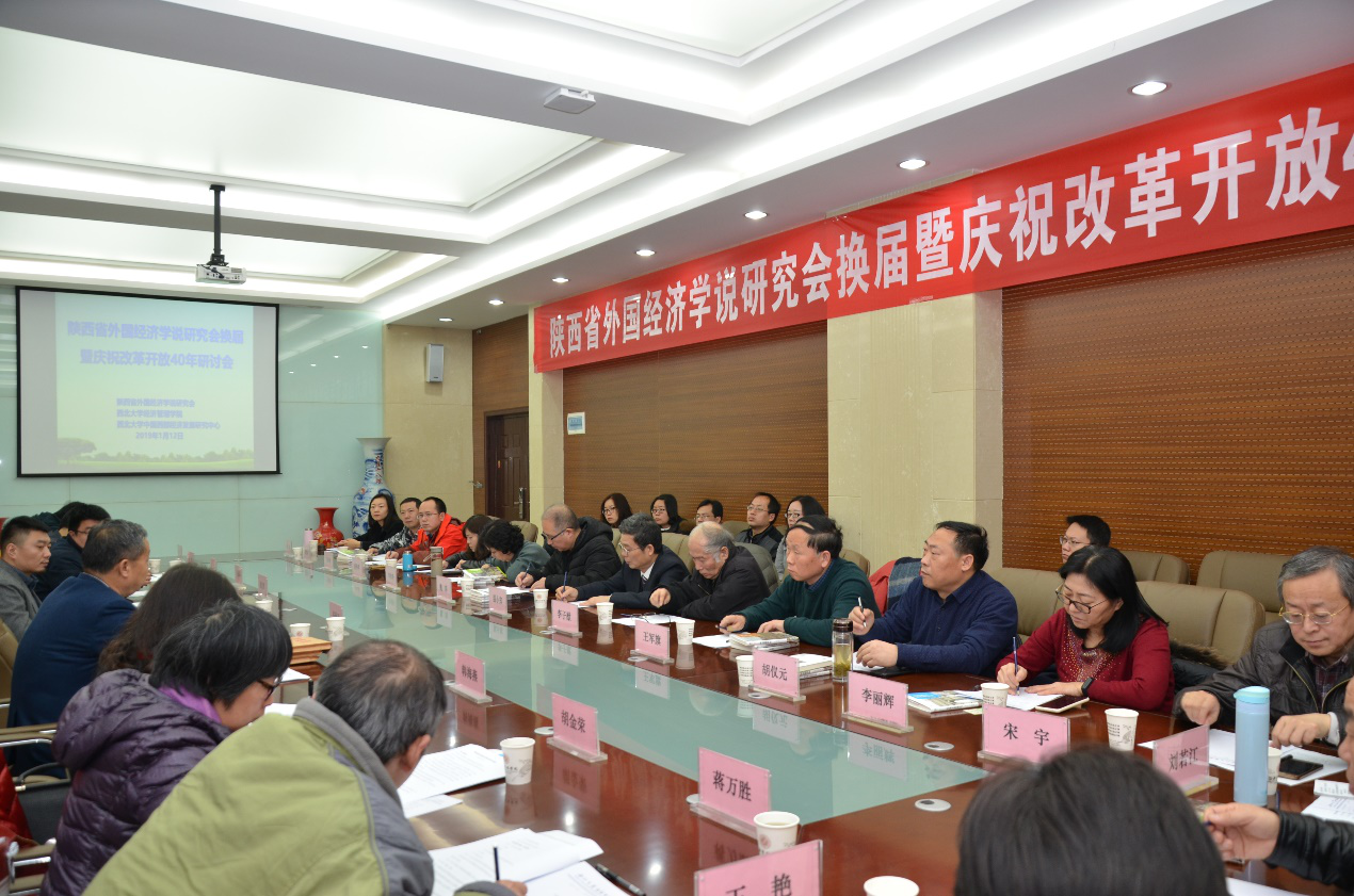1月12日,由陕西省外国经济学说研究会、yl23455永利官网、yl23455永利官网中国西部经济发展研究中心联合主办的“陕西省外国经济学说研究会换届暨庆祝改革开放40年研讨会”在yl23455永利官网圆满举办。来自陕西师范大学、西安交通大学、西北政法大学、陕西理工大学等省内近20家高校和研究机构的60余名代表参加会。会议由秘书长马晓强主持。