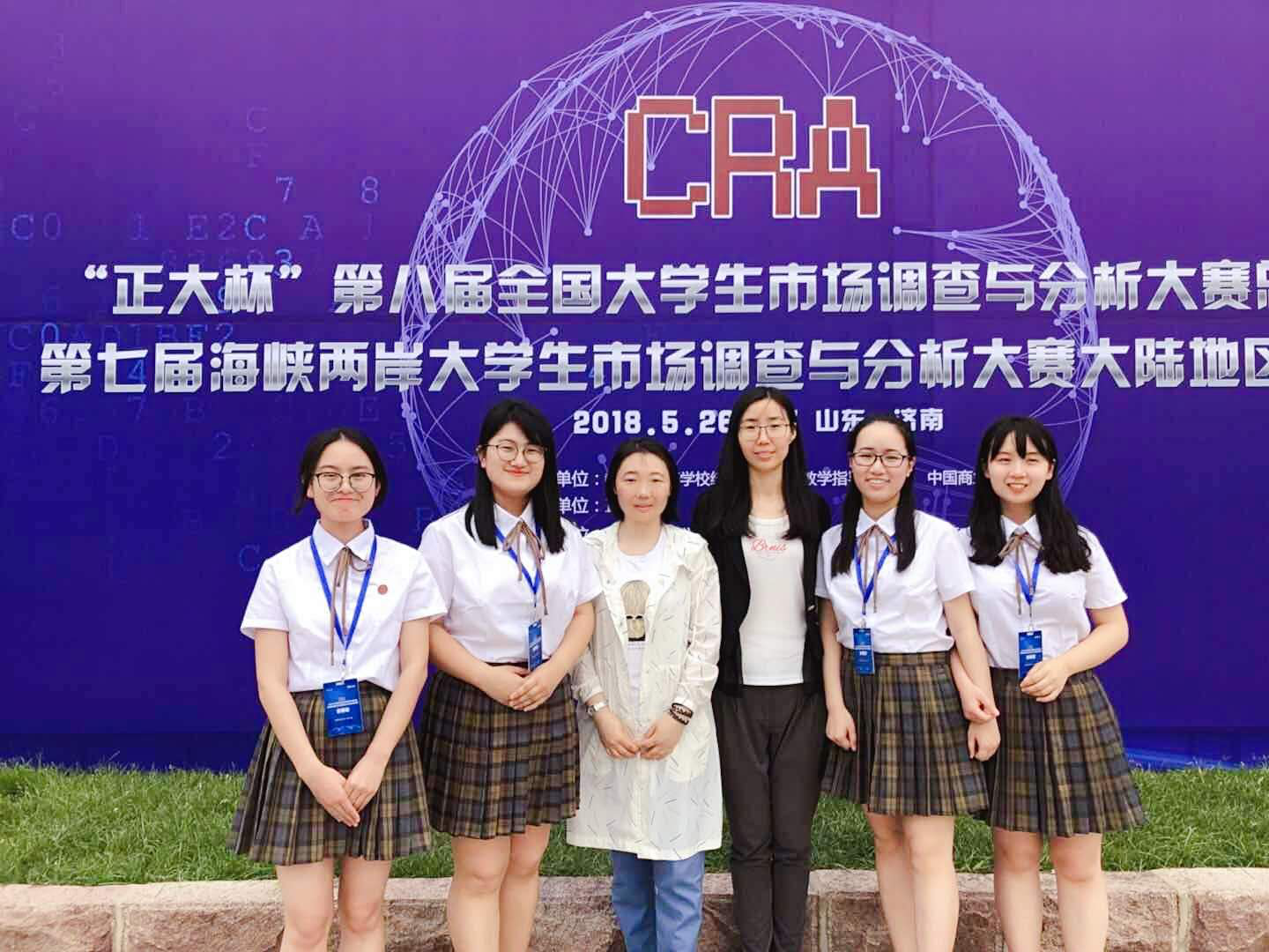 2018年5月26日至27日,由教育部高等学校统计学类专业教学指导委员会和中国商业统计学会联合主办“正大杯”第八届全国大学生市场调查与分析大赛总决赛暨第七届海峡两岸大学生市场调查与分析大赛大陆地区选拔赛,在山东财经大学举行。永利官网数理经济与统计学系王莉和张苗两位老师指导,2015级经济统计学专业的杨光、来倩、黄静和任翘翘四位学生组建的“火锅凉茶”团队的作品《养生“知”道——西安市大学生养生现状调查及分析》获得全国总决赛一等奖的成绩。