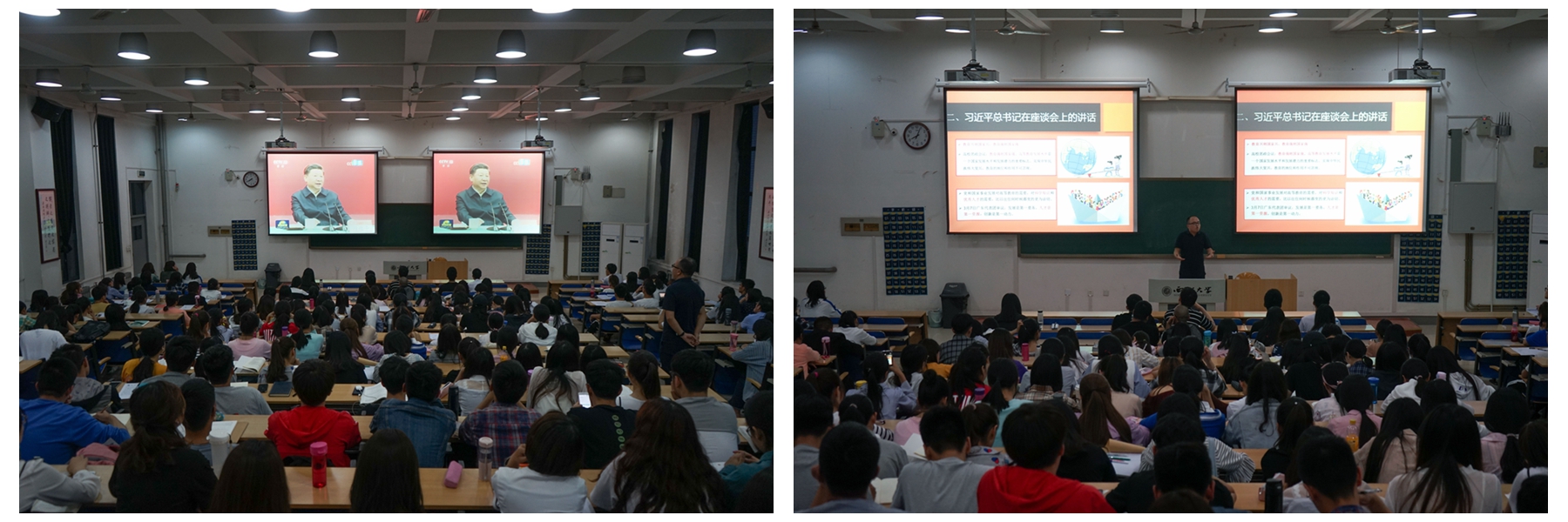 yl23455永利官网团委组织团学学生骨干于5月3日晚集体观看了《新闻联播》关于习近平总书记在北大考察并与师生座谈的报道,热烈讨论了习近平总书记的重要讲话,团委书记郝锐领学。郝锐带领大家回顾了十八大以来习近平总书记通过座谈、考察、书信交流等多种方式的“五四寄语”。郝锐谈到,习近平总书记反复强调青年要有国家民族责任感,要数立正确价值观,要求真学问、下苦功夫。我们青年学生要牢固树立四个自信,奋发图强,立足本职,埋头苦干。团委副书记李若昕认为,习近平总书记的讲话为我们团学工作开展指明了方向,提供了方法,树立了榜样,学生干部要主动对标,先学先行,做新时代的奋斗者。团委专职团干张立谈到,习近平总书记对教师队伍建设和青年学生发展的殷切期望就是我们工作学习的根本遵循,学生干部要以习近平总书记为榜样,用习近平总书记的讲话精神指导实践,将学习自觉转化为行动自觉,努力践行爱国、励志、求真、力行,才能传承好并发扬好“五四精神”。学生团委副书记贾翌诘同学在发言中说,作为学生干部要自觉学习理论知识,努力做到知行合一。学生团委副书记盛洁同学认为,要以习近平总书记的讲话精神指导团建工作,尤其是思想政治教育工作。学生会主席秦坤同学在发言中说,中华民族的伟大复兴是民族的事、国家的事,更是青年的事,新时代的新青年要成为中华民族伟大复兴的生力军。学生会副主席曹露露同学认为,广大青年人既是接受教育的同时也要有加强自我教育的思想和觉悟,向着做社会主义建设者和接班人的目标去奋斗。
