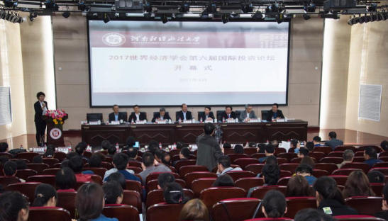 2017年4月15-16日,河南财经政法大学举办中国世界经济学会第六届国际投资论坛,本次论坛由中国世界经济学会、南开大学跨国公司研究中心主办,我校应用经济学学科组承办。国家发展与改革委员会、国务院发展研究中心、中国社会科学院以及中国人民大学、南开大学、厦门大学等43个单位的130余位专家学者出席了此次活动。永利官网王珏教授,博士研究生白东北、庞鹤博士生受邀出席会议。