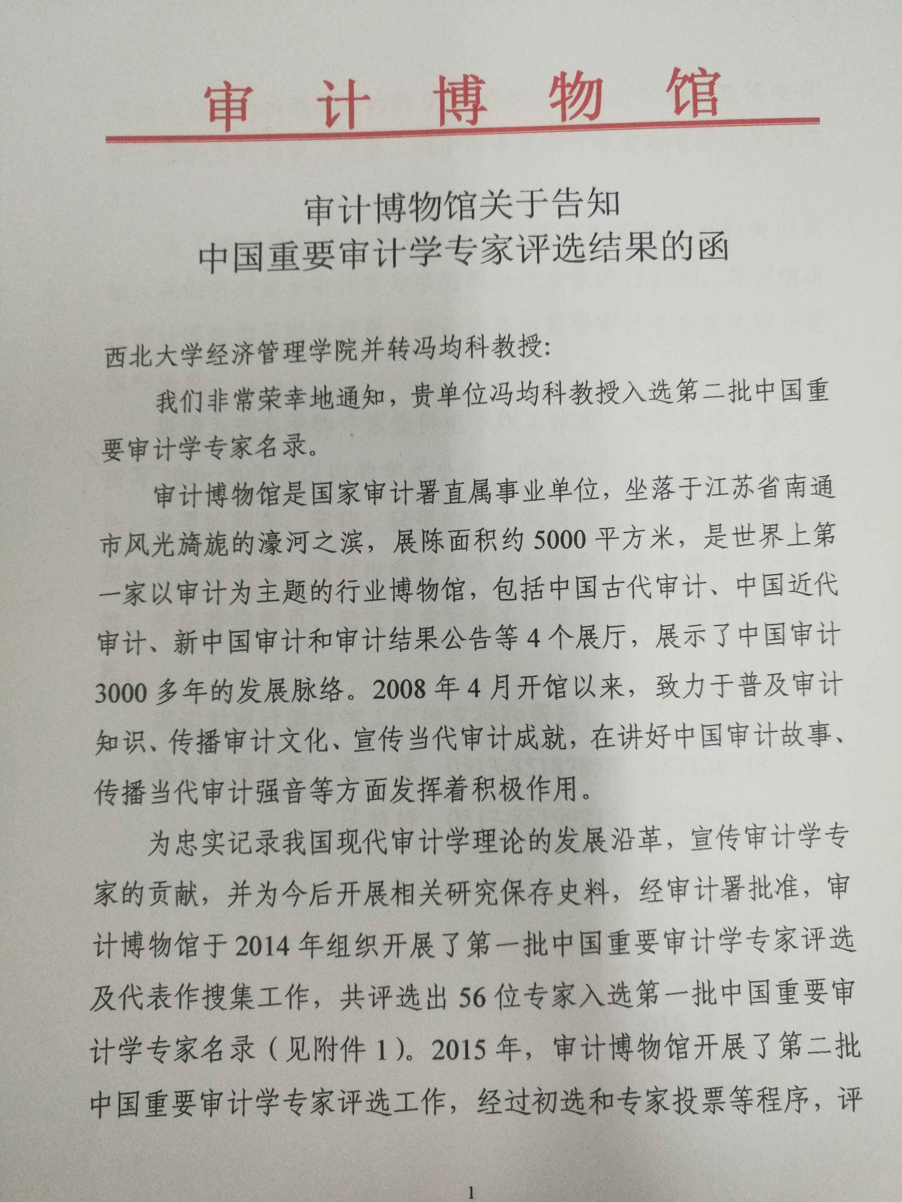 经审计署批准,审计博物馆于2015年开展了第二批中国重要审计学专家评选工作,经过初选和专家投票等程序,评选出包括冯均科教授在内的92位在审计理论研究和实践领域有重大影响力的专家入选第二批中国重要审计学专家名录。