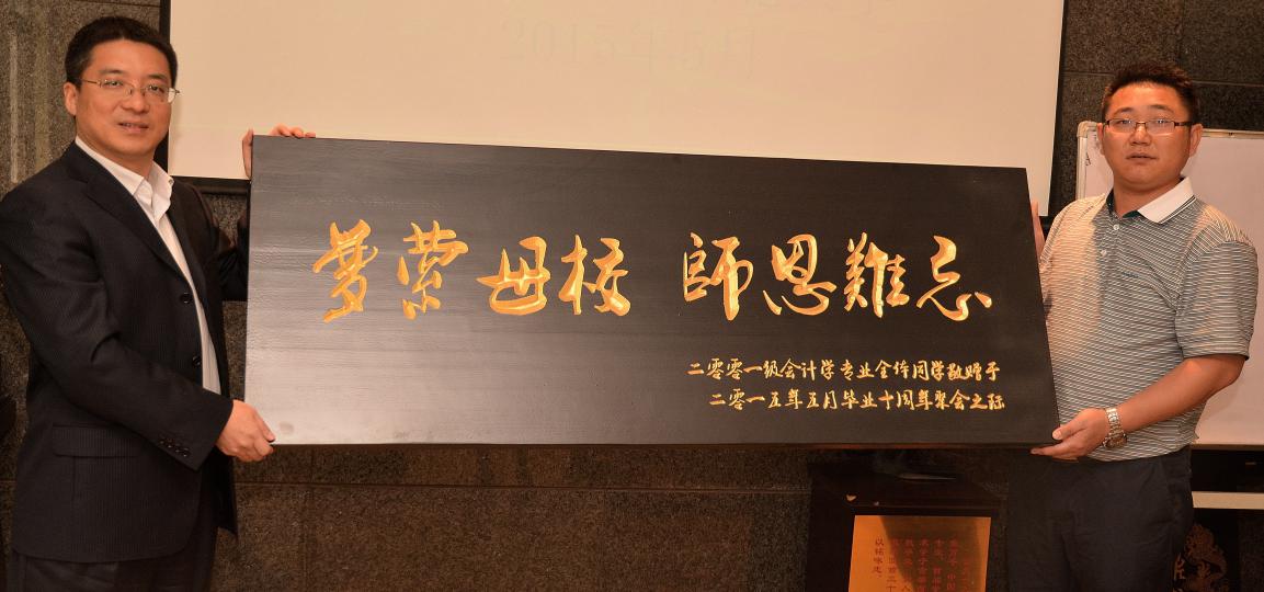 5月2日,永利官网2001级会计学专业40余名校友从全国各地重返母校,开展了纪念毕业10周年活动。期间,开展了师生座谈、向学院赠送牌匾、参观校园等系列活动。院党委书记李国良,会计学系原系主任张晓明教授,会计系教师唐亮、张元智、肖国强,时任辅导员、现学生处副处长李宝星参加了活动。