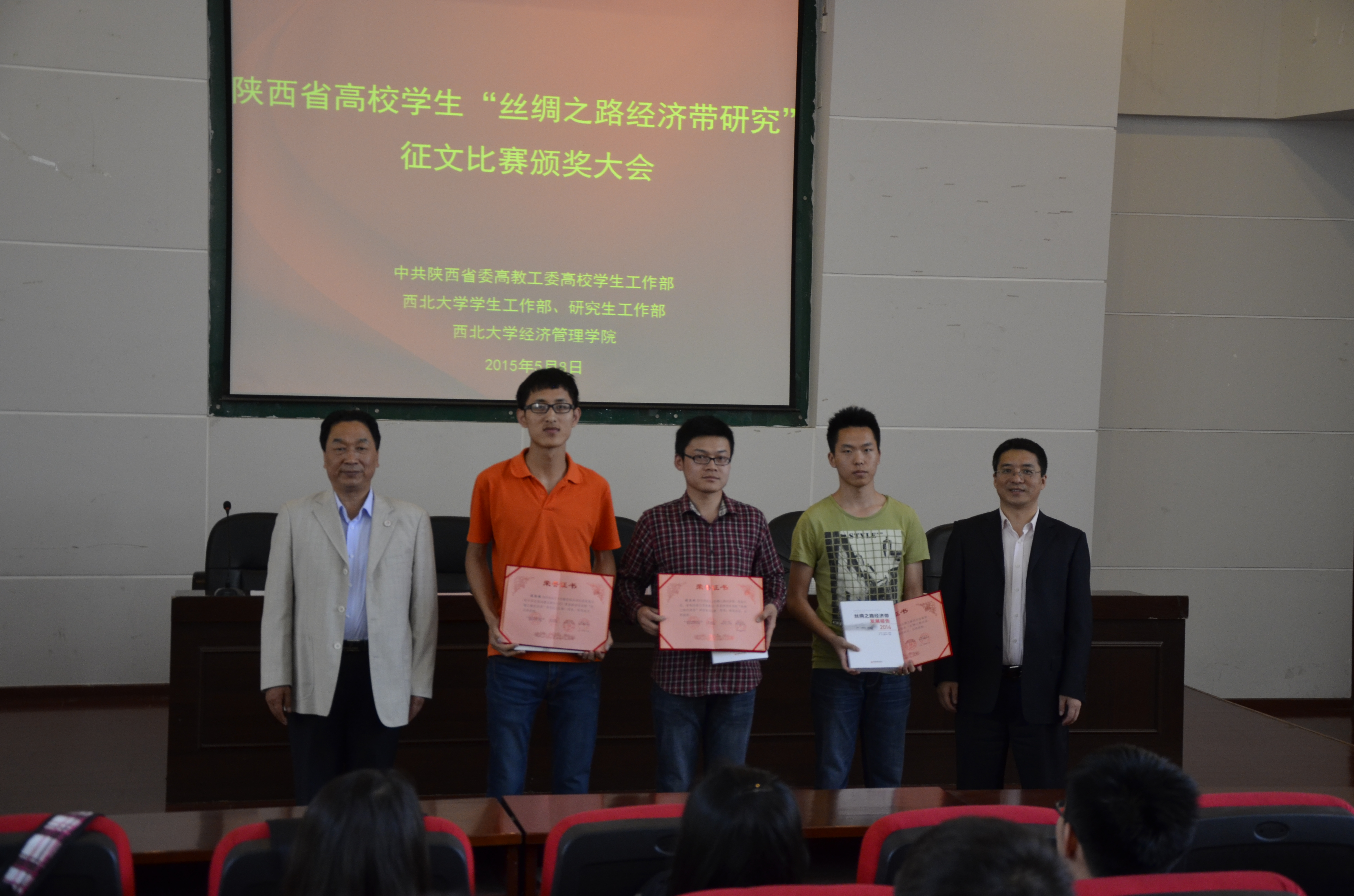 本次征文比赛旨在深入学习贯彻习近平主席关于“丝绸之路经济带”建设的讲话精神,积极鼓励广大学生开展关于“丝绸之路经济带”学术研究和学生问题研讨,活动面向全省高校学生于2014年12月启动,受到各高校和广大学生的热情响应和积极参与,共收到西安交通大学、yl23455永利官网、西安石油大学、西安财经学院等高校学生提交的论文91篇。yl23455永利官网组织专家评委会进行认真评审,共评出一等奖3篇,二等奖4篇,三等奖5篇,优秀奖10篇。颁奖大会上,李邦邦书记代表学校向所有获奖同学表示了热烈地祝贺。李书记讲到,丝绸之路经济带建设离不开沿线高等院校和科研机构在多领域的科学研究。yl23455永利官网建校110余年来,始终以人才培养和科学研究为根本,服务于西部乃至全国经济社会的发展。学校依托包括yl23455永利官网在内的各方力量,充分发挥在“丝绸之路”学术研究方面的学科优势,积极利用学校多学科的综合优势,开展协同创新研究,力争为国家和地方社会、经济发展做出更大贡献。他同时鼓励大学生们积极参与研究“丝绸之路经济带”这一重大战略课题,投身于实现中华民族伟大复兴的实践当中,希望大学生们在研究、创新这一重大课题的过程中得到锻炼和提高,为将来投身于丝绸之路经济带建设奠定良好的基础。
