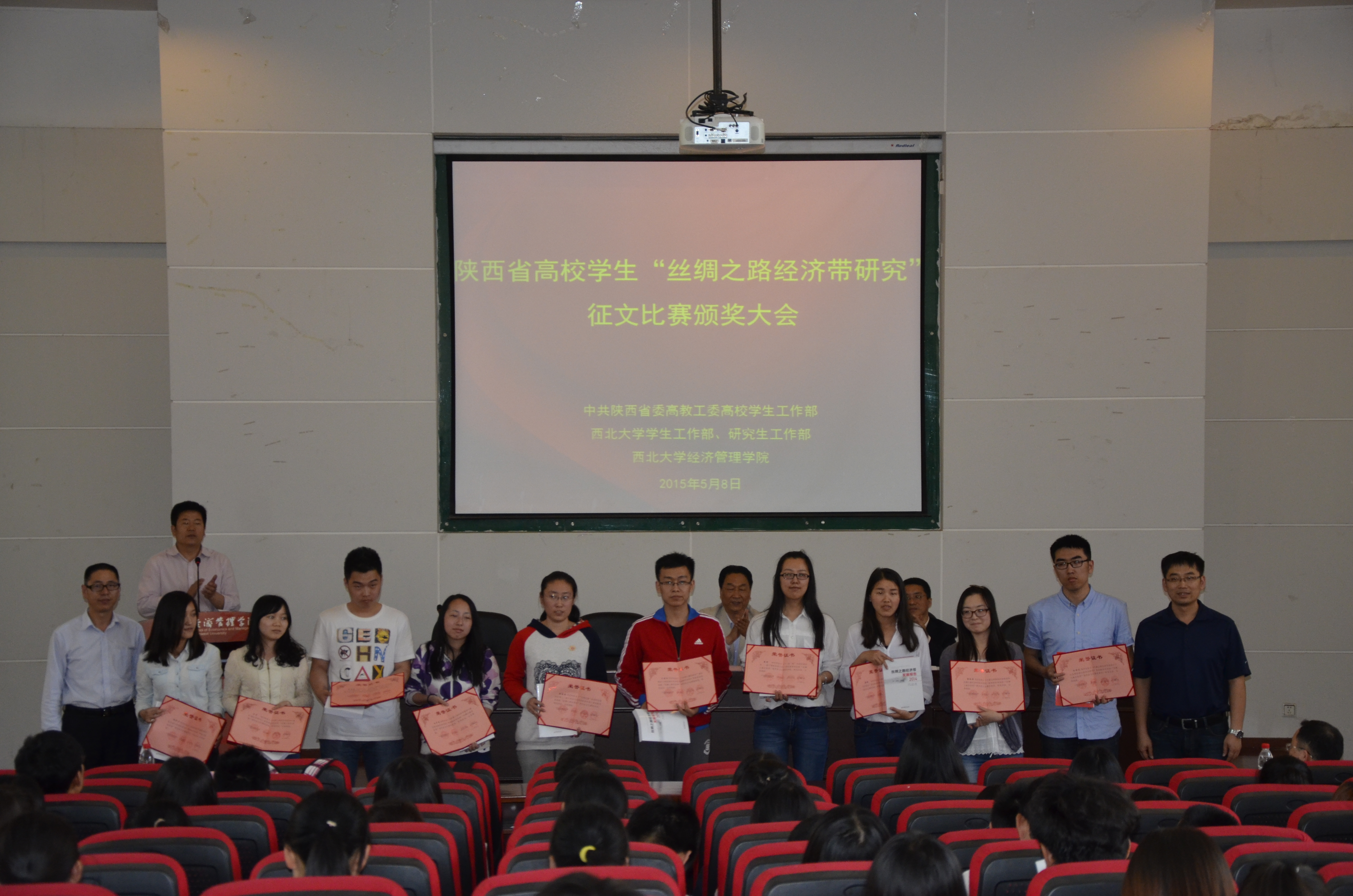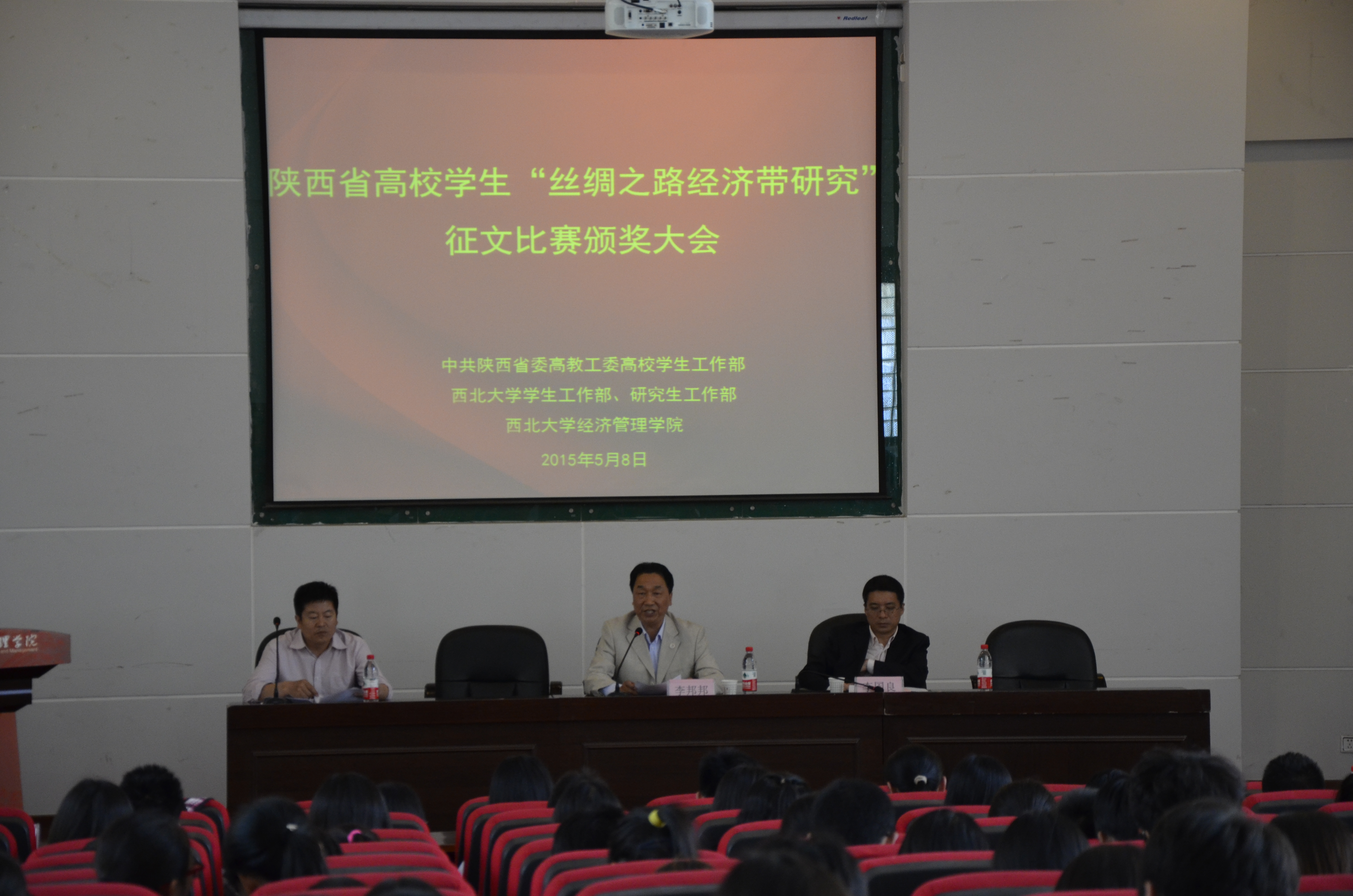 5月8日下午,由中共陕西省委高教工委高校学生工作部、yl23455永利官网学生工作部、yl23455永利官网研究生工作部、yl23455永利官网主办,yl23455永利官网具体承办的全省高校学生“丝绸之路经济带研究”征文比赛颁奖大会在金海报告厅隆重举行,校党委常委、纪委书记李邦邦出席大会,校学生工作部、研究生院、yl23455永利官网相关负责人及师生代表共计250余人参加了大会。