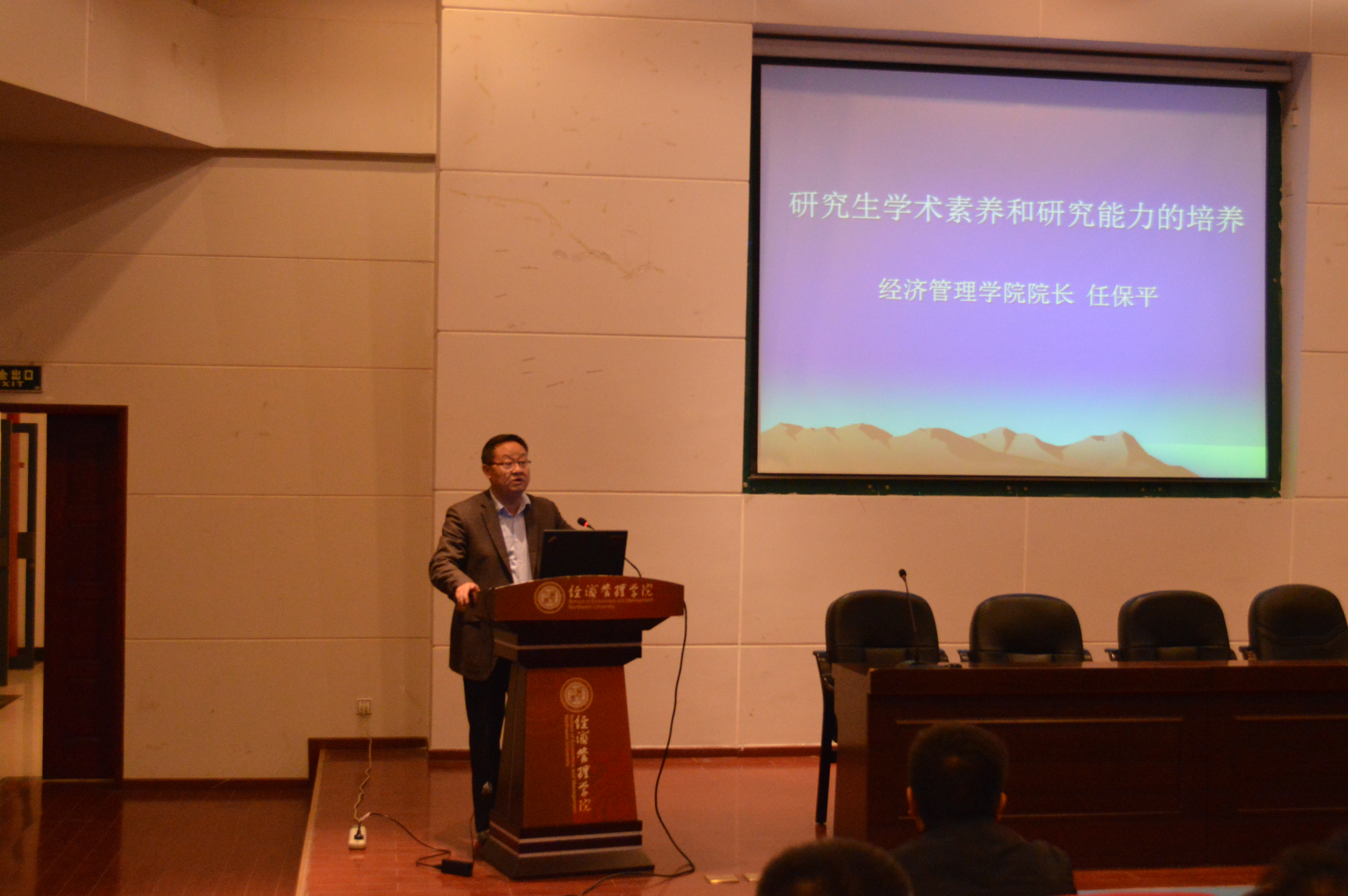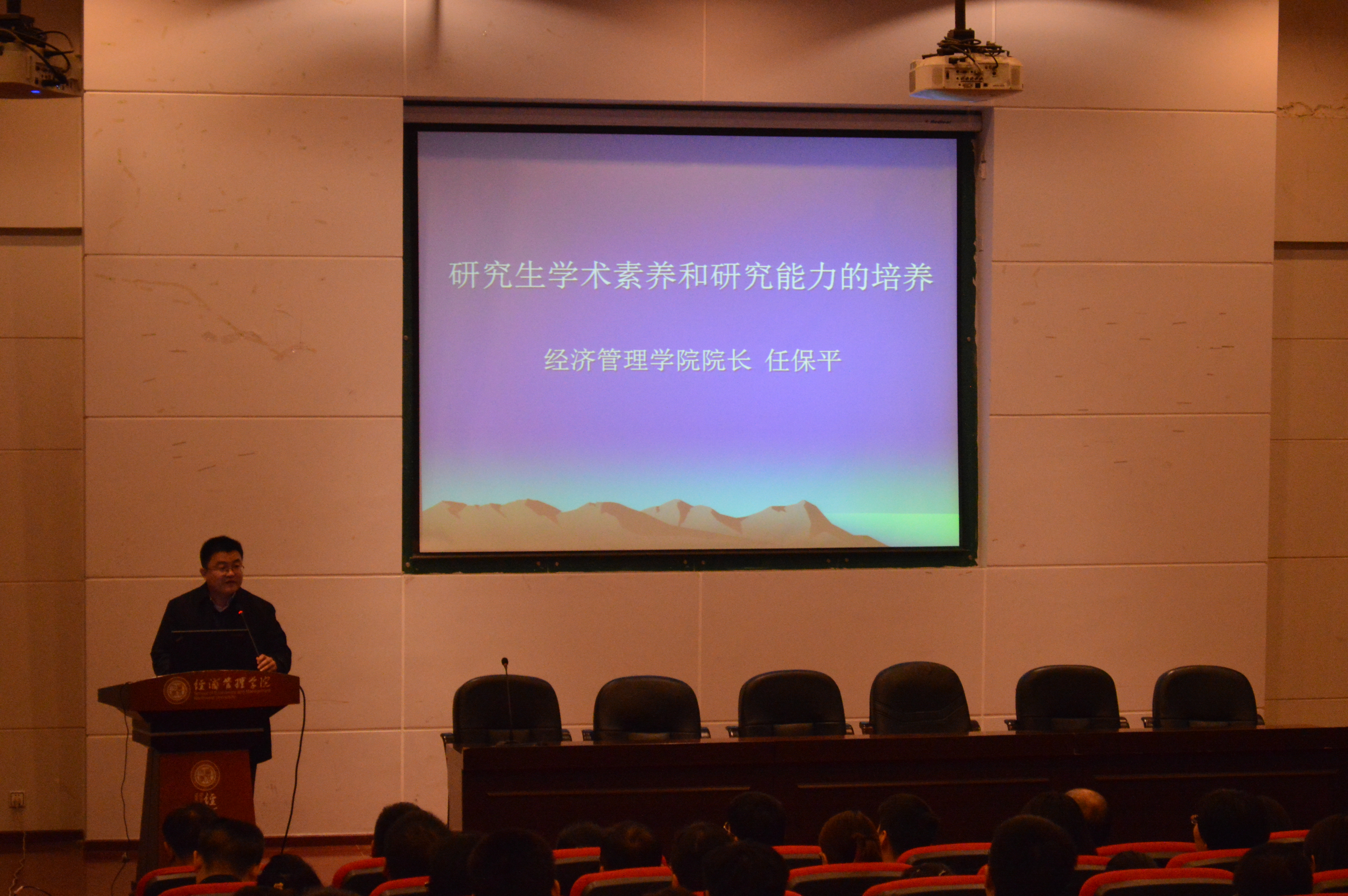10月16日晚,由yl23455永利官网研究生院、研究生工作部主办,yl23455永利官网承办的导师讲坛第十五讲在长安校区金海恒业报告厅顺利举行。院长任保平教授应邀做题为“研究生学术素养和研究能力的培养”的专题报告。研究生工作部部长王强老师、经济系主任何爱平教授、院党委副书记李一凡老师出席了报告会。报告由吴振磊副院长主持,学院部分青年教师、研究生共计300余人参加。