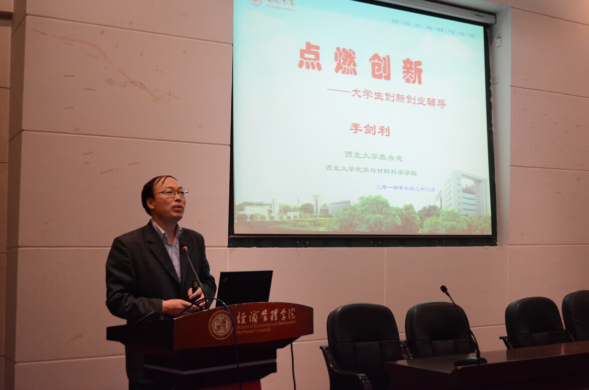 接下来,李剑利教授就大学生创新创业训练计划作了详细解读,李教授首先讲解了实践教学的相关内容,指出实践教学与传统教学的不同,并介绍了实践教学的重大意义,以此引出创新培养。随后李教授就大学生创新创业训练计划项目作了讲解,他介绍了创新创业的相关内容和大学生创新创业训练计划的两个平台,重点讲解了创新创业计划的训练目标,实施原则。随后李教授根据自己的教育教学实践,介绍了几个非常有代表性的创新创业的事例。最后,李教授给在场学生就如何提高自己的创新和学术能力提出了三点意见:1.想法是核心,要学会思考;2.重视研究方案的设计;3.撰写学术论文,语言表达能力一定要过硬。