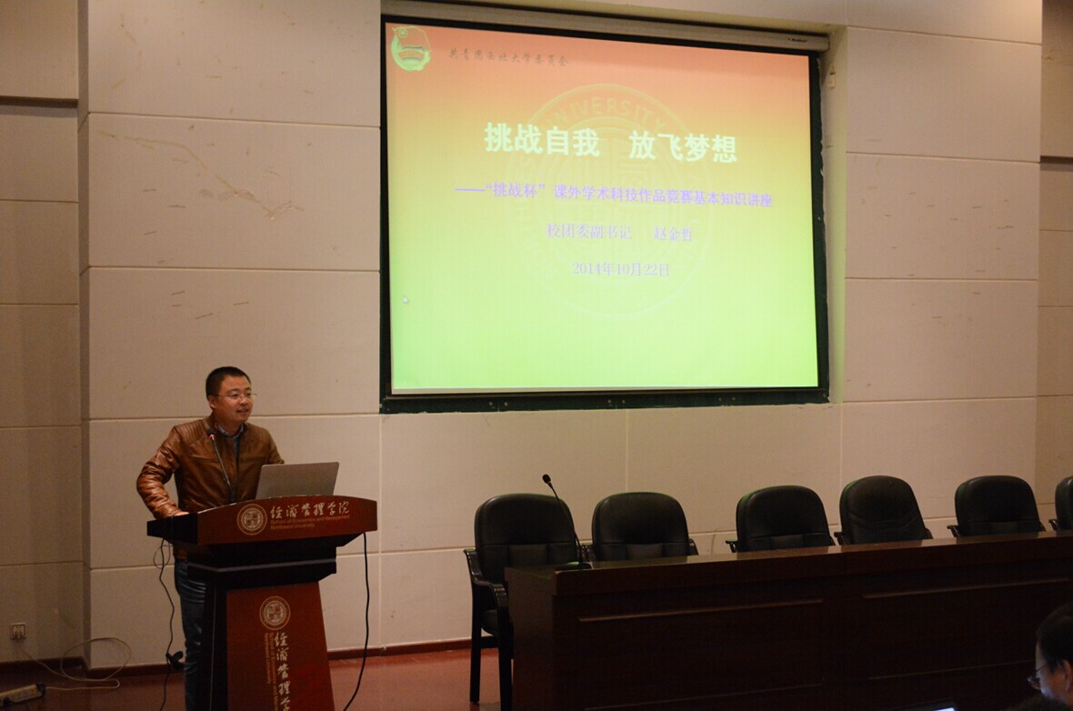 讲座中,赵金哲老师首先就“挑战杯”课外学术科技作品竞赛作了参赛辅导,赵老师分管我校共青团大学生课外科技工作,多次带队参加“挑战杯”全国竞赛,他就“挑战杯”赛事介绍、我校历届参赛获奖情况、校第七届“挑战杯”基本安排等几个方面作了详细解读,特别就如何准备挑战杯竞赛作品和参赛注意事项作了重点讲解,他从“参赛要求”、“作品选题的范围”、“作品评选的基本原则”、“竞赛安排”等四个方面向在场学生作了深入辅导。最后,他向学生讲述了参加“挑战杯”的意义,鼓励永利官网学生充分利用大学时光,挑战自我、积极参赛,全面提高自身的综合素质。
