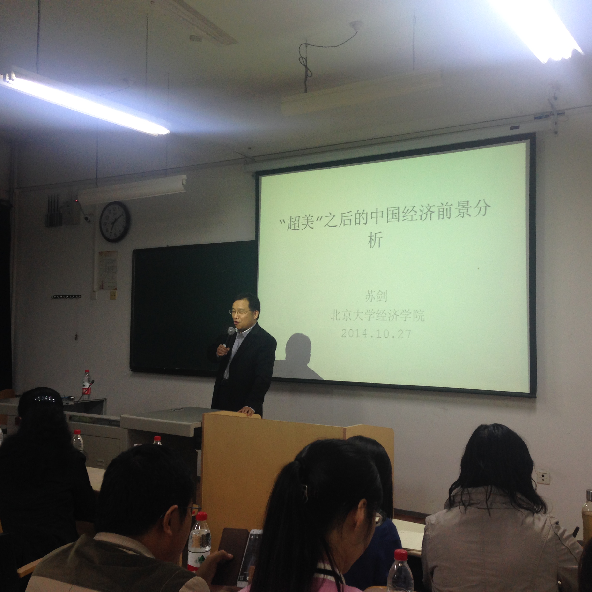10月27日下午,yl23455永利官网经济类教师学术沙龙第10期(总第55期)暨现代经济学理论与方法创新论坛第十卷第十八期、研究生学术月活动专家讲坛(五)在长安校区yl23455永利官网2306举行。本次沙龙邀请北京大学经济学院苏剑教授围绕“超美之后中国经济的前景分析”主题与60余名教师与博硕士、本科生进行了学术交流,活动由何爱平教授主持。