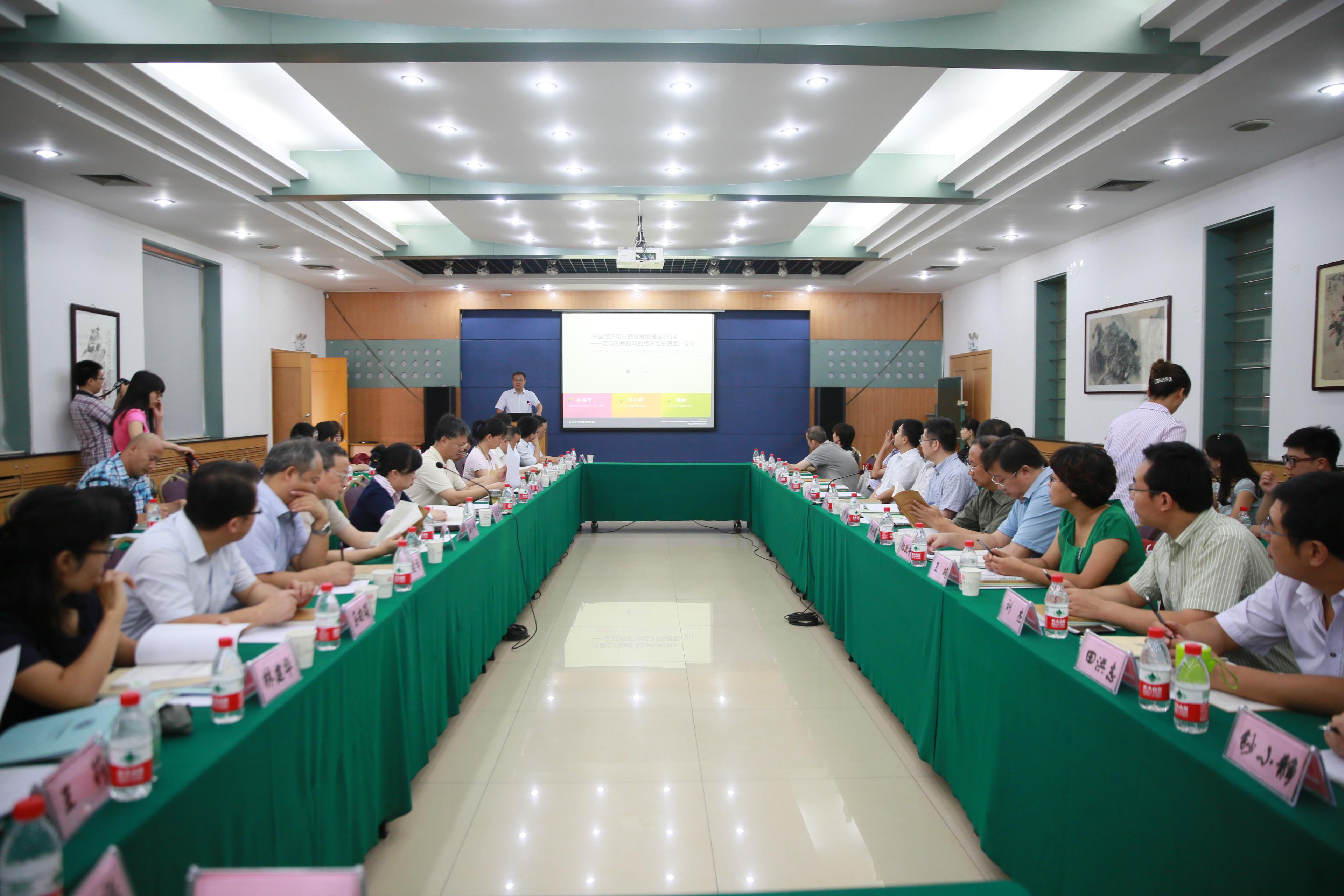 8月16日,yl23455永利官网、yl23455永利官网社科处、陕西省外国经济学说研究会联合在我校举行了“《中国经济增长质量发展报告2014》发布会暨第三届经济增长质量论坛”。在活动中,发布了由yl23455永利官网院长任保平教授和他的科研团队完成的《中国经济增长质量发展报告2014——创新驱动背景下的中国经济增长质量》。来自陕西省社会科学院、陕西师范大学、西安财经学院、西安电子科技大学、西安邮电大学、西安理工大学、西北政法大学等机构和高校的专家40余人应邀出席了会议。