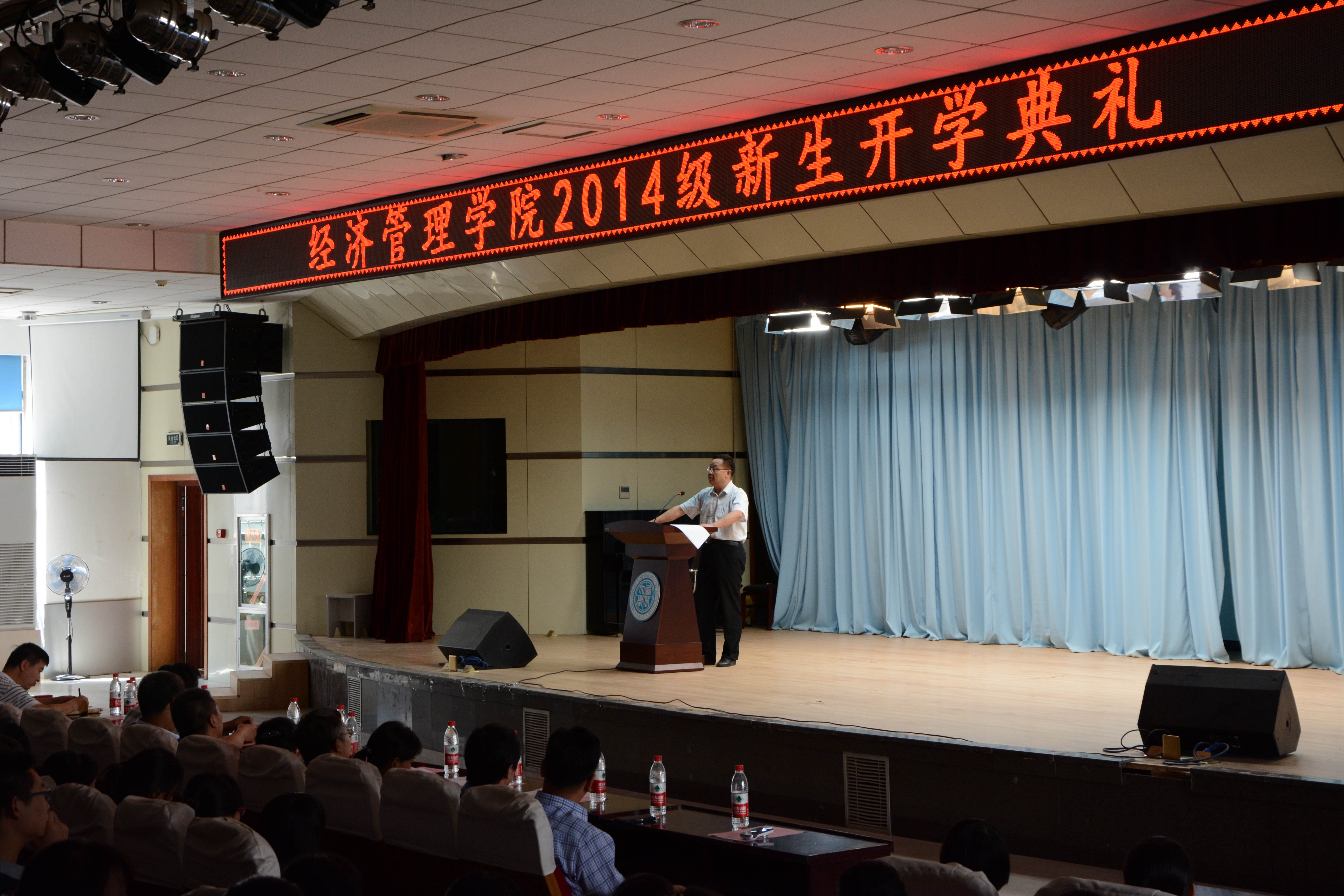 典礼上,2014级金融工程专业张朵和政治经济学专业赵仁杰同学分别代表本科和研究生新生发言,表达了成为经管学子的欣喜与自豪,在今后的学习中定会以“公诚勤朴”的校训勉励自己,力争做到勤学善问,积极上进,学有所成。2011级工商管理专业王超代表在校生发言,与新生分享了在校学习的心得体会。