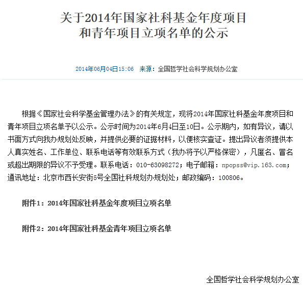 6月4日,全国哲学社会科学规划办公室对2014年国家社科基金年度项目、青年项目和西部项目进行了公示。根据评审结果,永利官网有5位教师的项目项获准立项,其中,重点项目1项,一般项目2项,青年项目1项,西部项目1项。