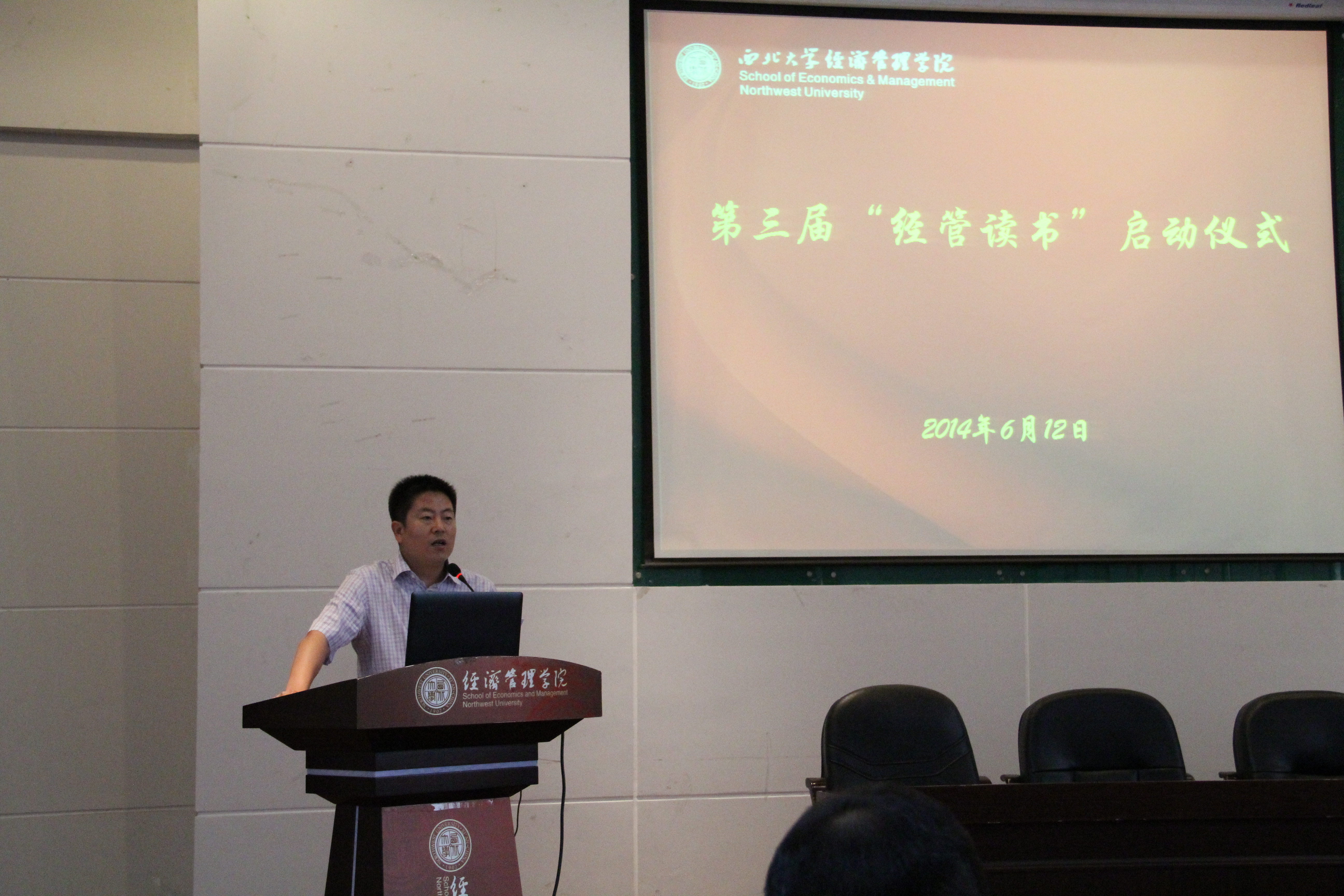 仪式上,院党委副书记李一凡首先宣讲了本次“经管读书”活动方案细则,并解读了本次活动同过往两届活动的不同点,一是本次读书活动引入了教师参与,学院各个系都推荐了教师担任本次活动的读书导师,指导本科生读懂、读透经典。并组织学生开展各类读书交流活动。二是扩充了读书数目,公布了100本经济类书籍,100本管理类书籍和50本人文类书籍。阅读采取读书小组模式以提高读书效果,三是对读书成果有明确要求,对不同年级提出了难度不同的要求,并要求活动要有延续性。之后本科生代表孙飞扬同学,研究生代表博丹同学分别发言,分享了自己的读书感悟。最后,院党委书记李国良讲话,李书记为大家列举了多个国家人均阅读量,并引用温总理曾经讲到关于读书关系到一个人的思想境界和修养、一个民族的素质、一个国家的兴旺发达的事例,给予了同学们很好的启发。李书记希望同学们要“爱读书、勤读书、会读书”,挑选真正有益的书籍,掌握正确的阅读方法,使开卷更加有益。至此,第三届“经管读书”活动正式启动。