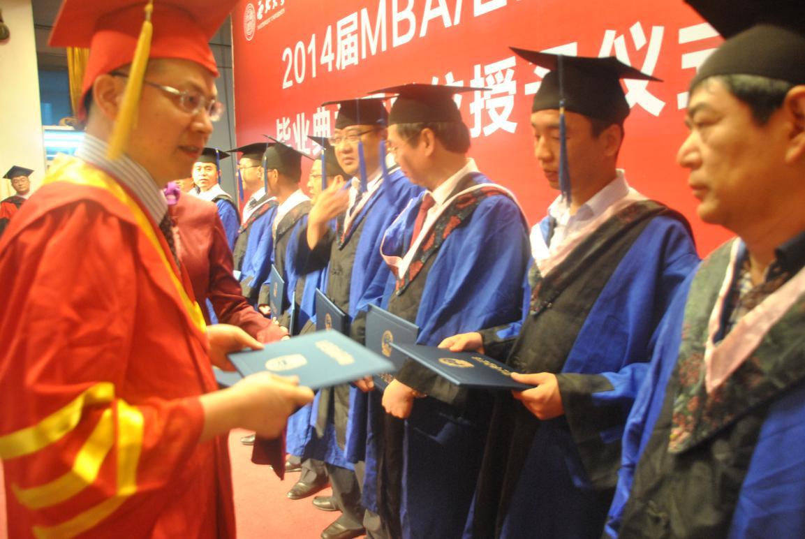 7月5日上午,永利官网成功举办了2014届EMBA、MBA毕业生学位授予仪式暨毕业典礼。校长方光华教授、校研究生院常务副院长王正斌教授、海航商业控股有限公司董事长兼总裁马超、永利官网党政班子成员、各系系主任、各中心主任及教师代表以及EMBA/MBA毕业生及家属500余人出席了活动。活动由副院长吴振磊副院长主持。本次共有68名EMBA学员获得高级管理人员工商管理硕士学位,272人获得工商管理硕士学位,127人完成陕西省工商管理硕士学习,顺利毕业。