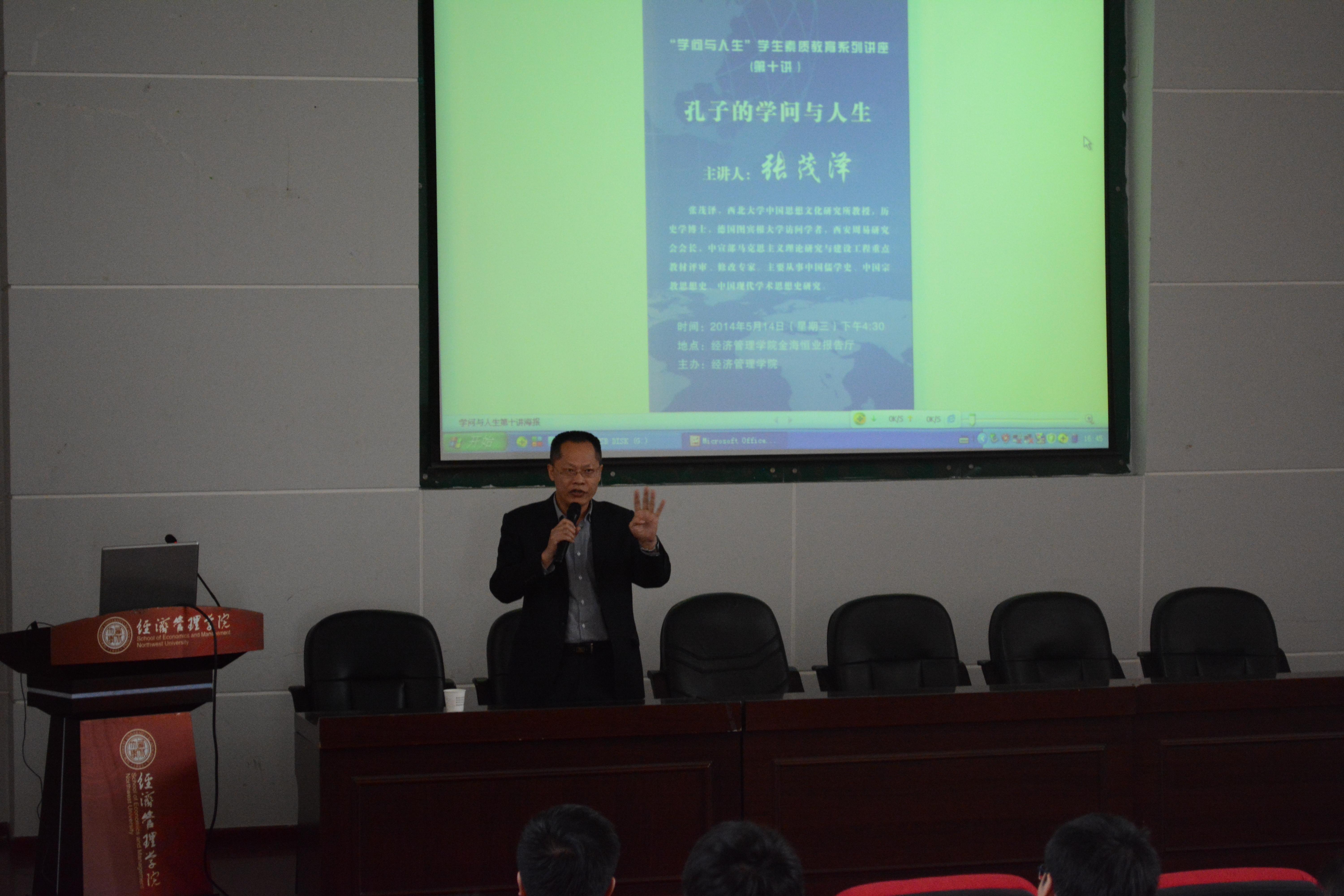 5月14日下午4:30,永利官网“学问与人生”素质教育系列讲座第十讲在金海恒业报告厅举行,我校中国思想文化研究所张茂泽教授应邀作了题为《孔子的学问与人生》的讲座。讲座由院党委书记李国良主持,副书记李一凡、部分辅导员和本科生共200余人到现场聆听了报告。