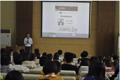 5月17日下午,学院93级院友、果麦文化传媒公司董事长、作家、著名出版人路金波应邀来院,为“MBA名家讲座”做了题为《禅与如何做生意》的讲座。讲座由副院长吴振磊主持,MBA在校生及部分MBA联合会成员、MBA中心全体工作人员近300人出席了活动。