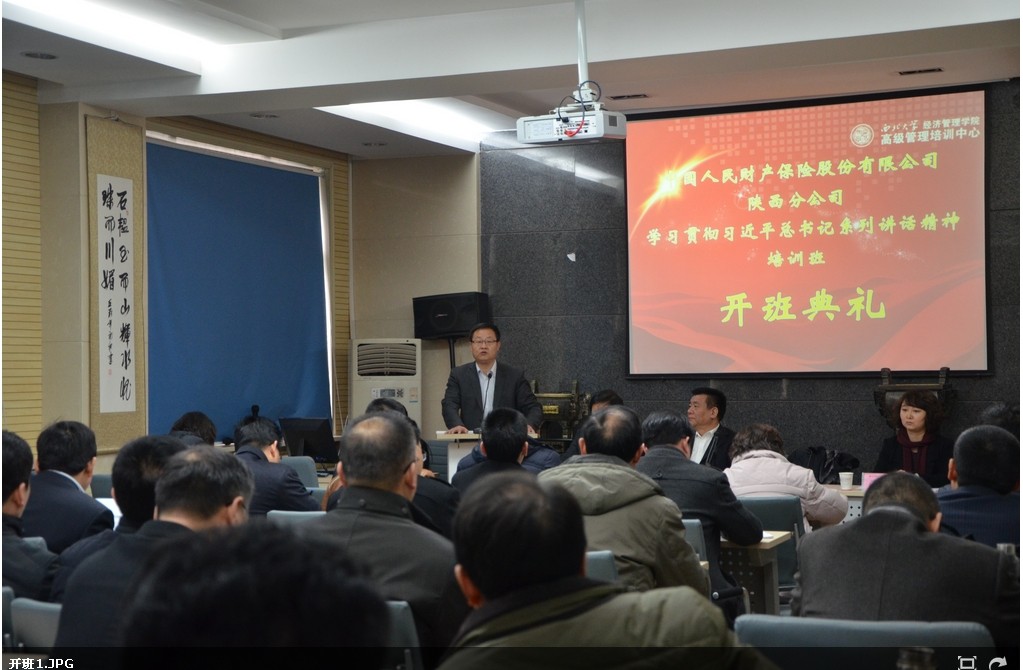 2月9—13日,受中国人民财产保险股份有限公司陕西省分公司的委托,永利官网成功举办了为该公司中高层管理人员开办的“学习贯彻习近平总书记系列讲话精神”专题培训班。