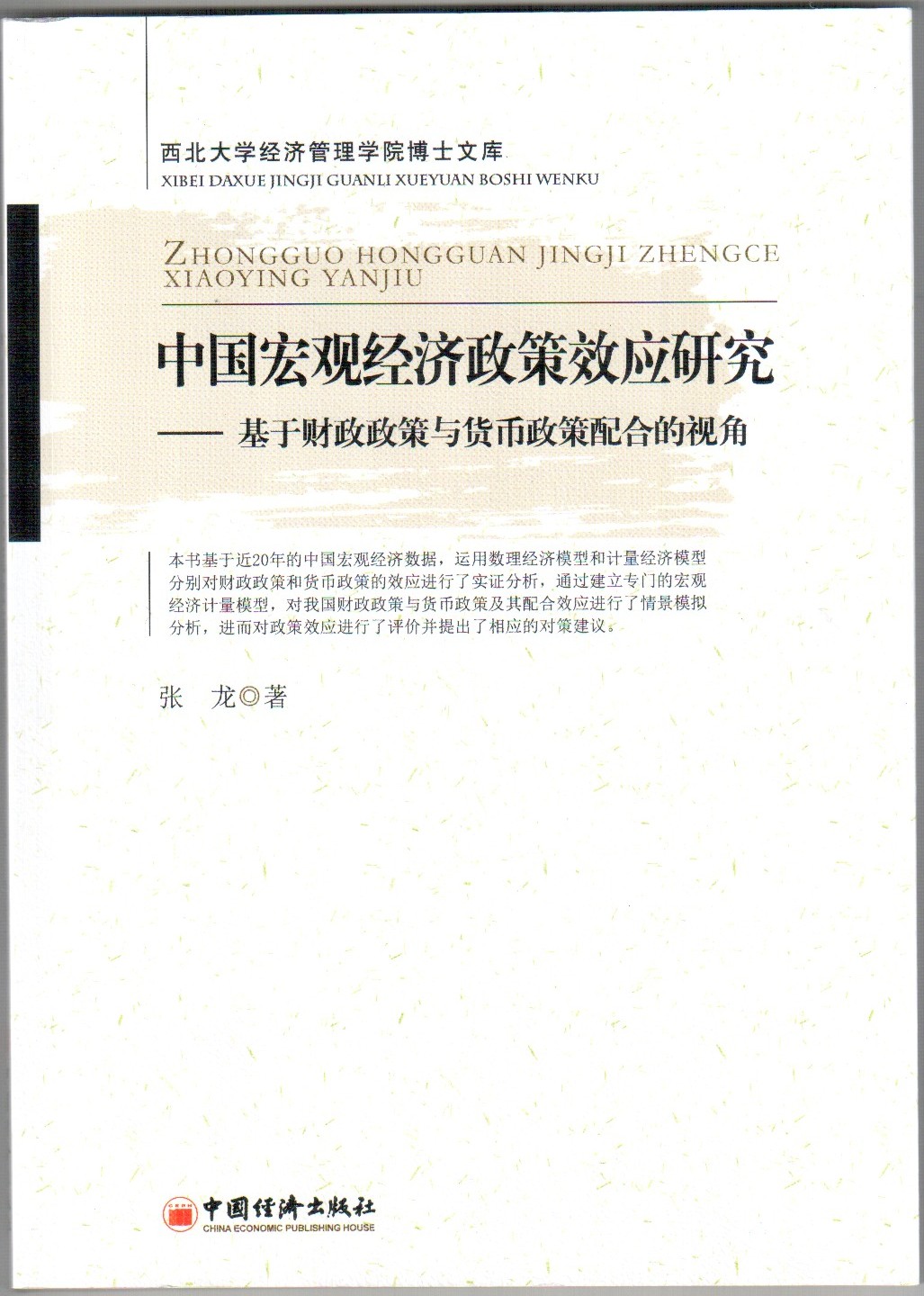 近日,永利官网数理经济与统计系张龙副教授的专著《中国宏观经济政策效应研究》由中国经济出版社出版,该书是永利官网陕西省重点学科西方经济学建设项目的研究成果。