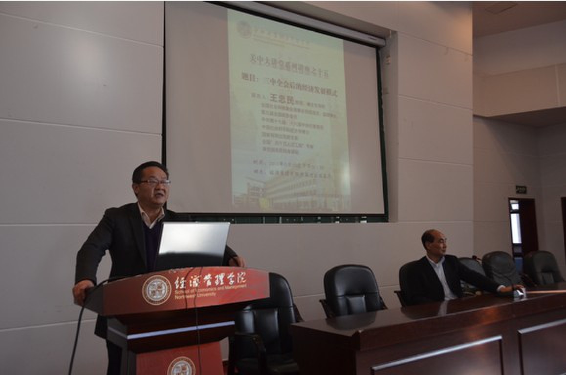 报告开始之初,王忠民教授回忆了1978年在yl23455永利官网经管学院就读时的情景,并对35年来西大、经管学院所发生的变化表示高兴。在报告中,他介绍了中国在工业化过程中取得的成就以及面临的基本问题,并从农业文明、环境污染、金融发展和十八届三中全会前后中国所发生的变化来展开论述。
