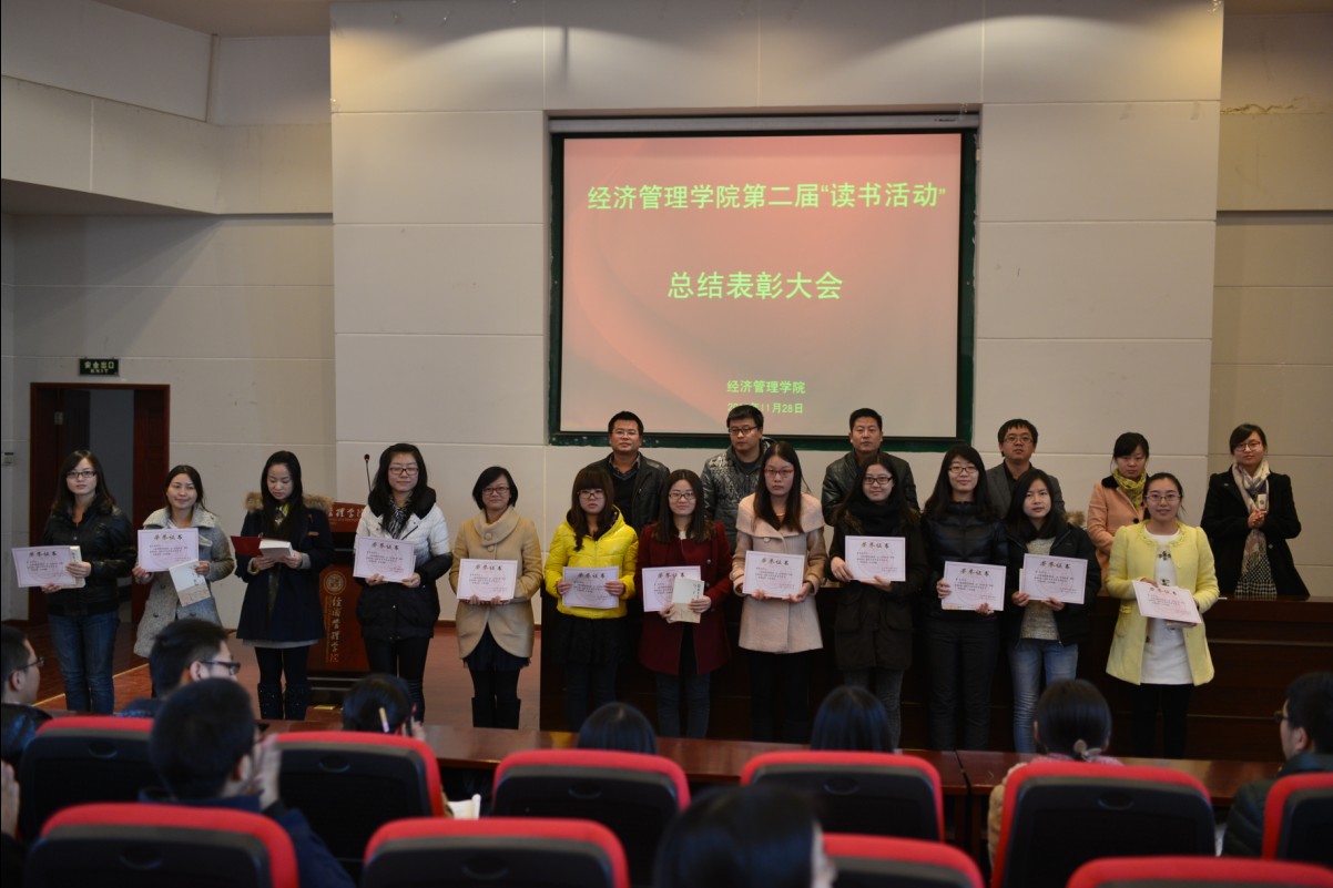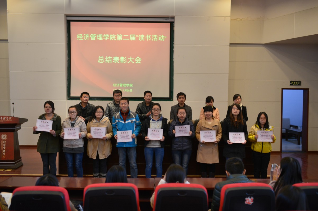 永利官网第二届“读书活动”于5月中旬开始,10月中旬结束。其中5月至7月为阅读交流阶段,8月为实践调研阶段,9至10月为成果提升和总结阶段。院学生工作领导小组根据“读书活动”方案要求,以“导师荐读”的方式邀请学院教授推荐经济类、管理类、人文经典类书籍各50本,向全院学生公布,并依据学生选读书目组建读书小组148个;选拔了24名优秀研究生,给每个读书小组配备一名研究生担任指导员,帮助本科生读透读懂选读书目;同时邀请青年教师不定期为同学进行读书辅导,为同学们答疑解惑。在为期五个月的活动中,各读书小组围绕着“读书引领优良学风”主题教育活动、“网上读书会”活动。“我的大学”读书报告会活动、读书心得交流评比活动、“读书与实践”调研报告撰写活动等五项主题活动,共开展读书活动390次,通过微博、人人等网络媒体发布读书活动信息1195条,撰写读书心得3585份,调研报告148份。活动中评选出的“优秀读书心得”将陆续在《经管学院报》、《经济视窗》等杂志报纸上刊登,并汇编成册。部分调研报告现已直接转化成为yl23455永利官网“大学生创新创业训练计划”项目。