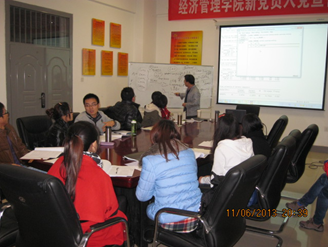 由学院工商管理系、信息管理与信息系统系、会计学系、旅游管理系主办的“现代管理理论与方法创新论坛”2013年第二十三期于2013年11月6日(星期三)晚7:00在学校南校区8201教室举行。此次论坛由学院工商管理系张洁、张宸璐老师主持,会计学系李辉老师做评论人,由学院工商管理系讲师杨晓做了题为“领导成员交换理论研究的最新进展及相应研究方法”的报告,学院2013级、2012级企业管理系、经济学系等硕士研究生20多人参加了此次论坛。