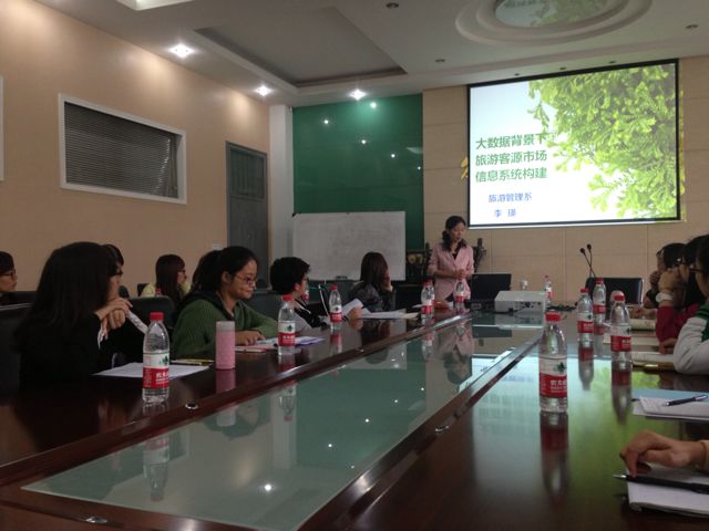 李瑛老师主要从三个方面阐述此次报告的主要内容,首先,以大数据背景下的旅游业引出大数据对于如今旅游企业及旅游行政主管部门的影响,并强调大数据时代的三个主要特征。其次,以奥地利旅游客源市场为例,依据大量的英文资料及文献向同学们详细阐述了奥地利旅游客源市场信息系统的模式及特征,并向同学们提出几点问题。最后,反思大数据对我国的影响以及提出更好的建议以促进中国旅游客源市场信息系统的完善与提升。在老师演讲的最后,同学们纷纷举手提问,积极发言,有的同学提出自己的困惑之处,有的则勇敢表达自己的想法和进一步深入的思考,大家在相互讨论中开阔视野,增长见识,共同进步,讨论长达一个多小时,将此次活动推向了一个高潮。